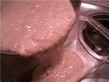 Now cut a corner from the plastic bag, and squeeze the mashed bananas into the bowl of brown sugar mixture.